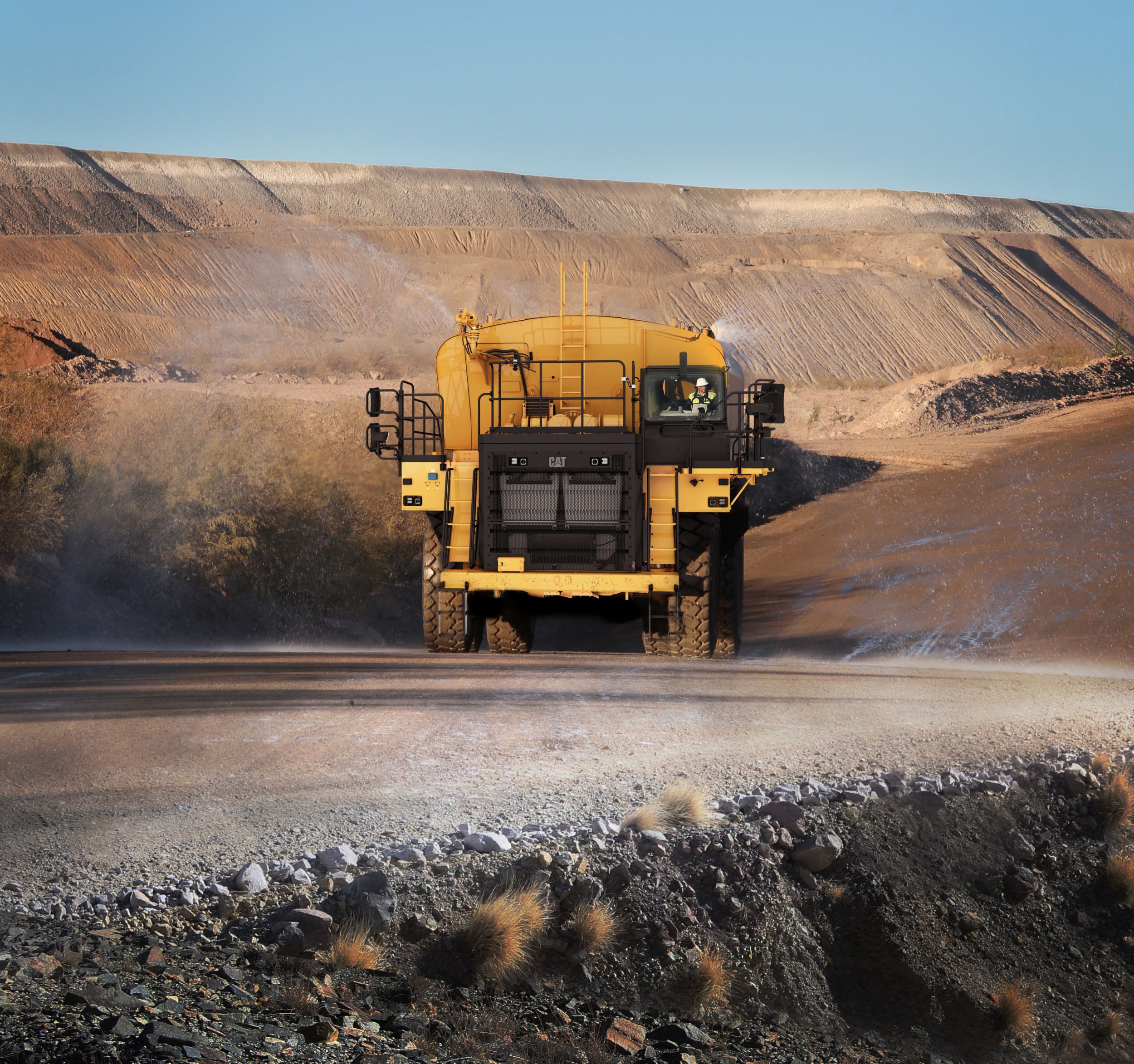 Properly watered haul roads directly impact fleet cycle times and the ability to meet production targets. As haul road dust takes a toll on safety and productivity at mines and quarries, the water truck is one of the most important pieces of support equipment at the site. The new Cat® 777 (05) Water Solutions Truck provides an integrated solution to help reduce haul road dust by solving overwatering and underwatering issues.