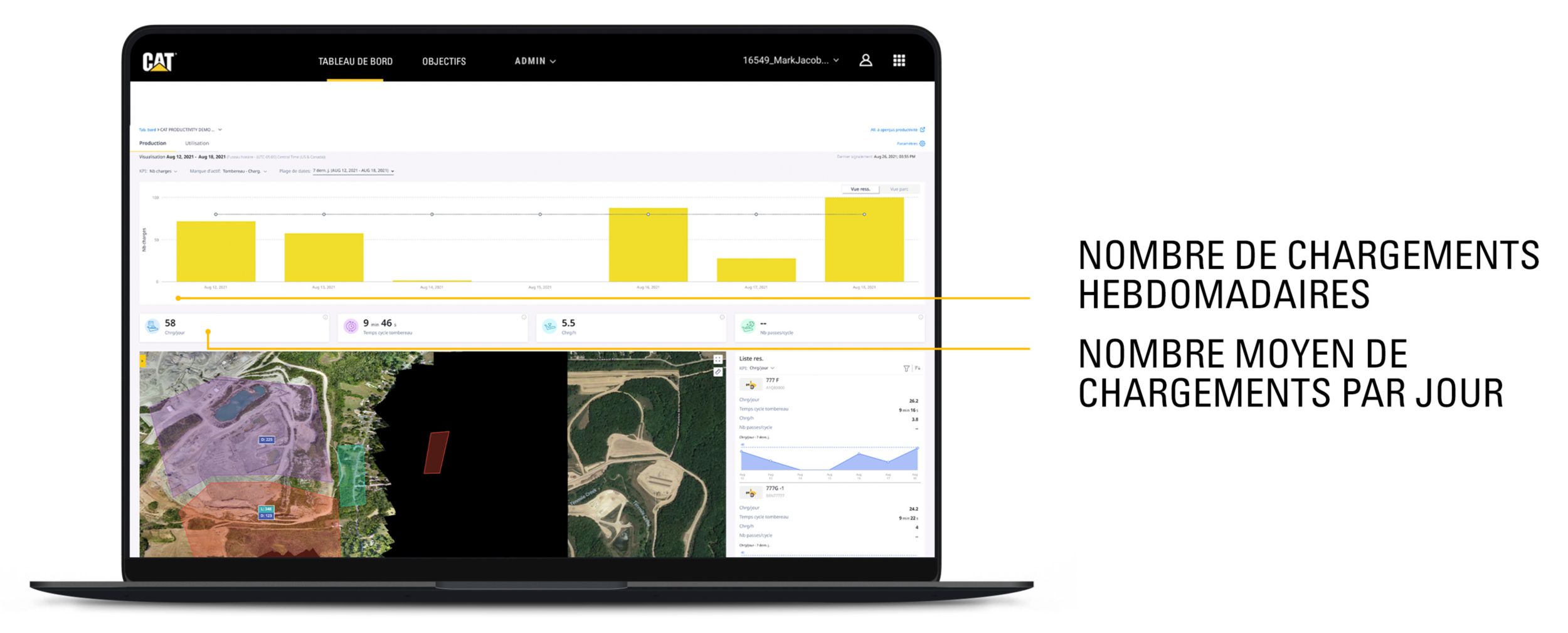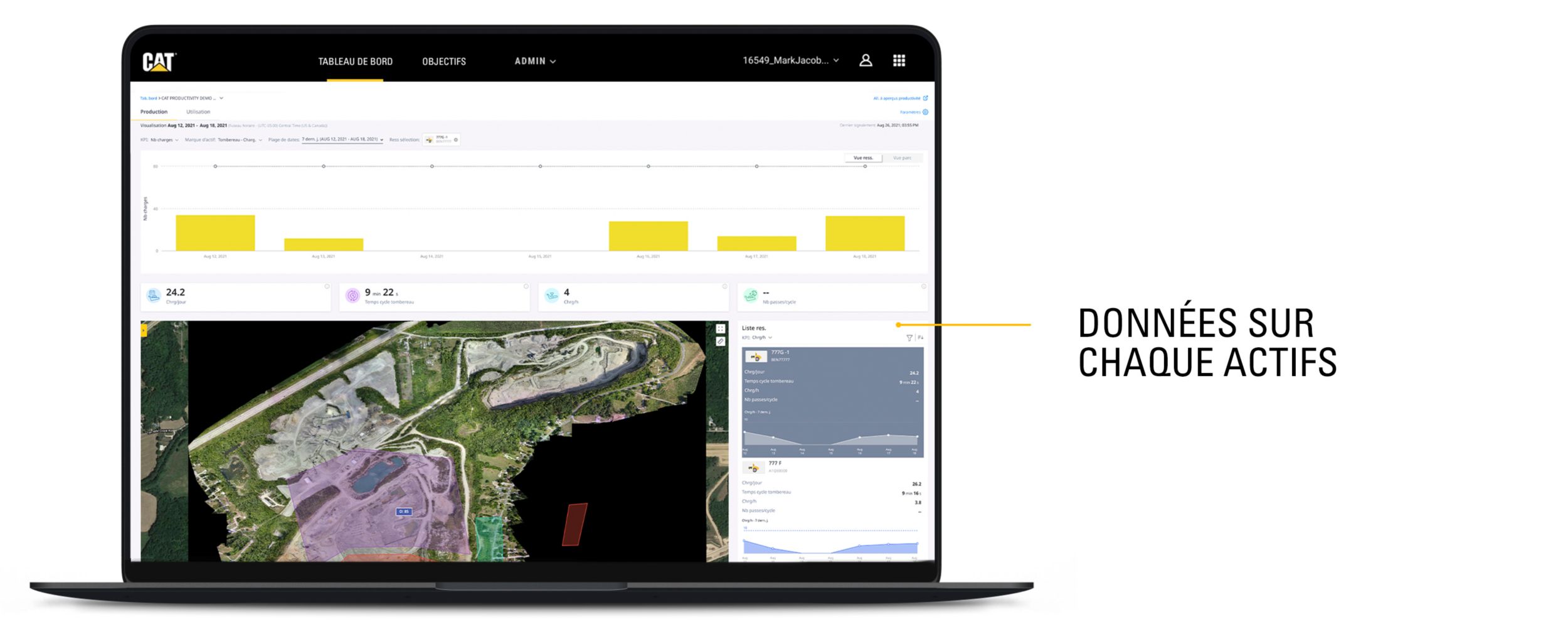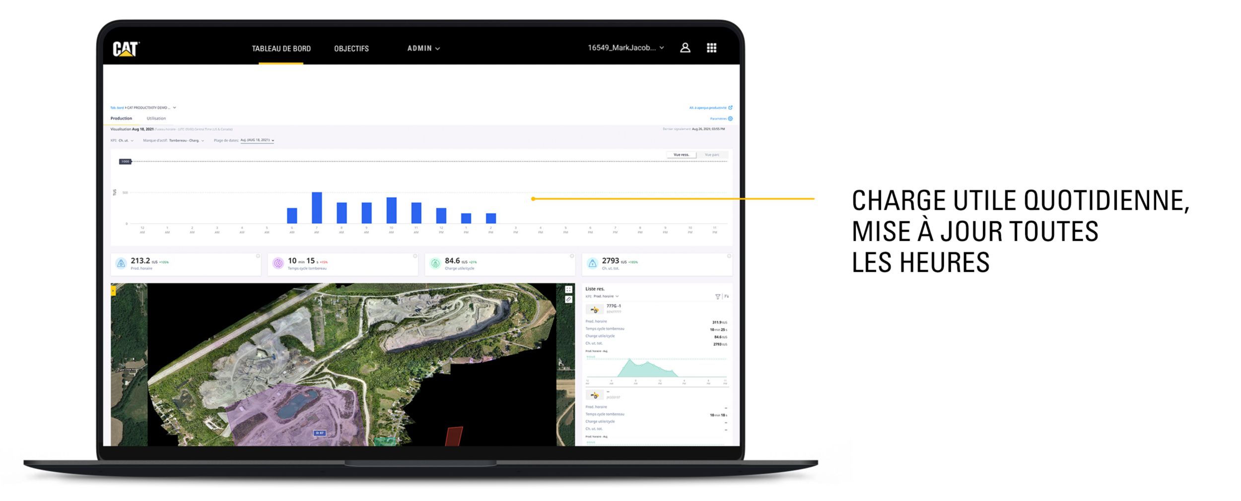 Cat® Productivity est une plateforme basée sur le cloud qui rassemble et analyse les mesures de production Cat, les données de tous vos équipements et des chantiers. Accessible via des ordinateurs portables ou des appareils mobiles, vous avez une visibilité de l’utilisation de vos machines et de l’avancement des travaux, sur le chantier ou ailleurs.
